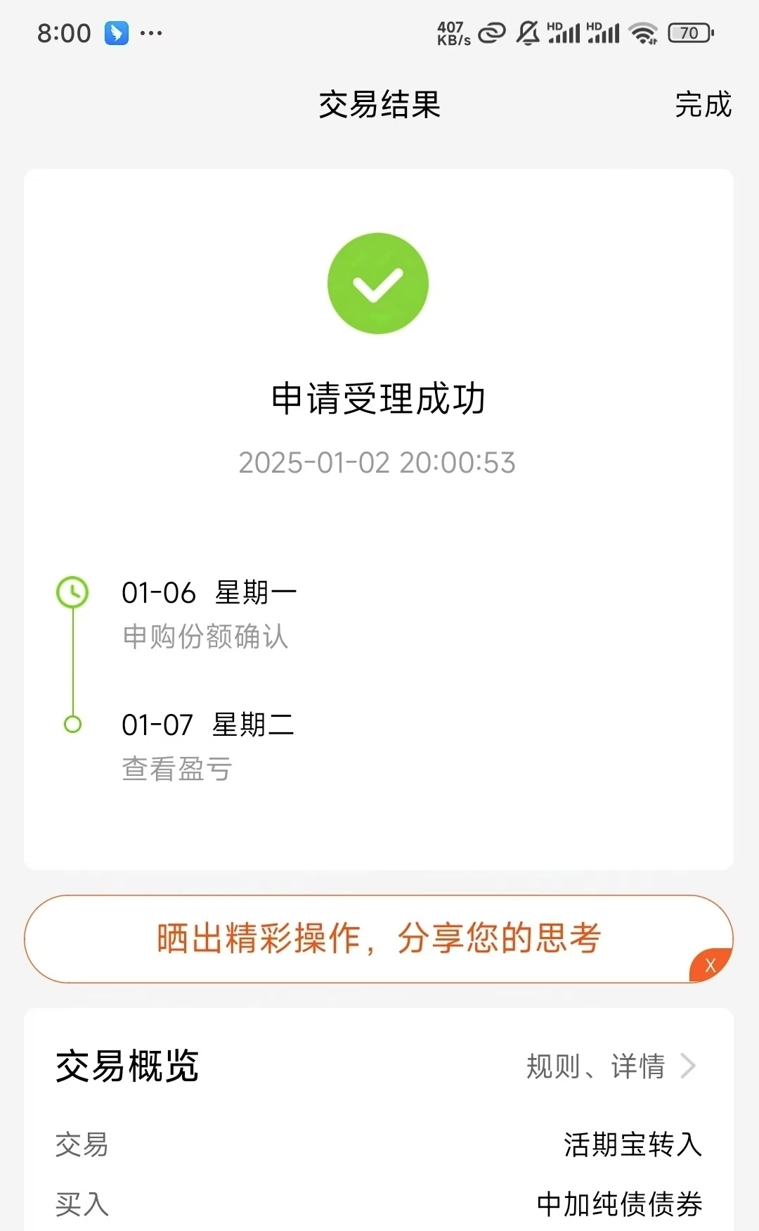 经历了市场多年的拷打,还是不管市场是上涨还是下跌,自己做好股债搭配才是王道,我选择定期投资$中加纯债债券$ 债基,增厚安全垫,账户波动不害怕。