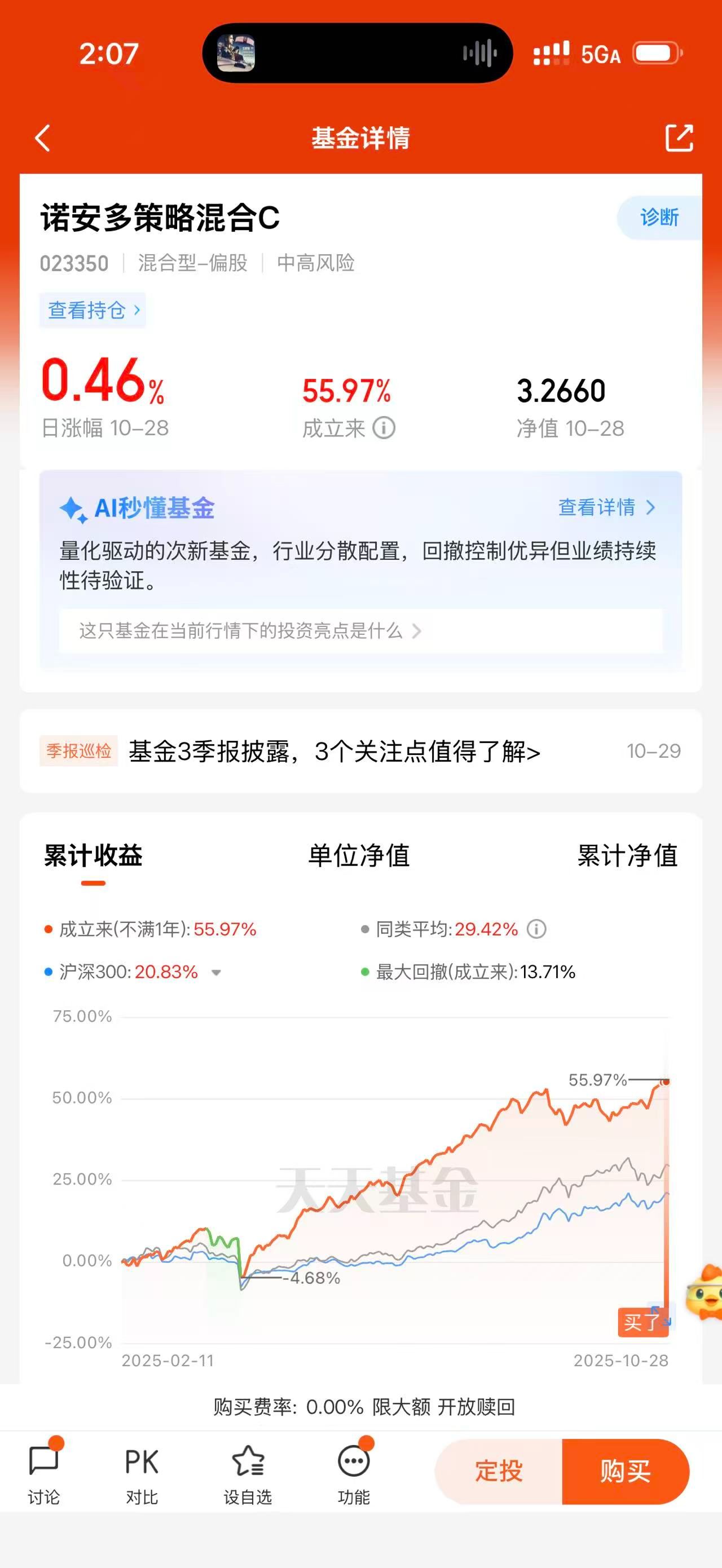 看数据才知道,诺安多策略混合C(023350)近一年跑赢沪深300不少