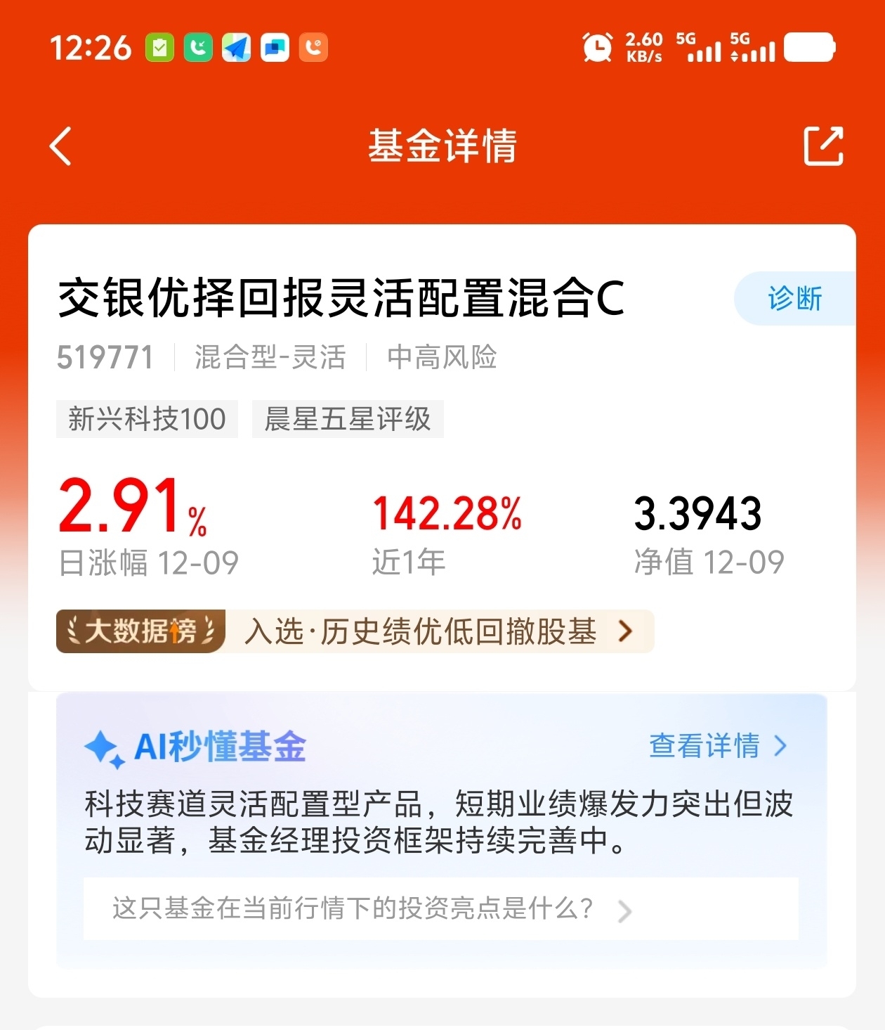 投资就像种树,需要时间等风来$交银优择回报灵活配置混合C$ 年收益率142%非常不错的`选择