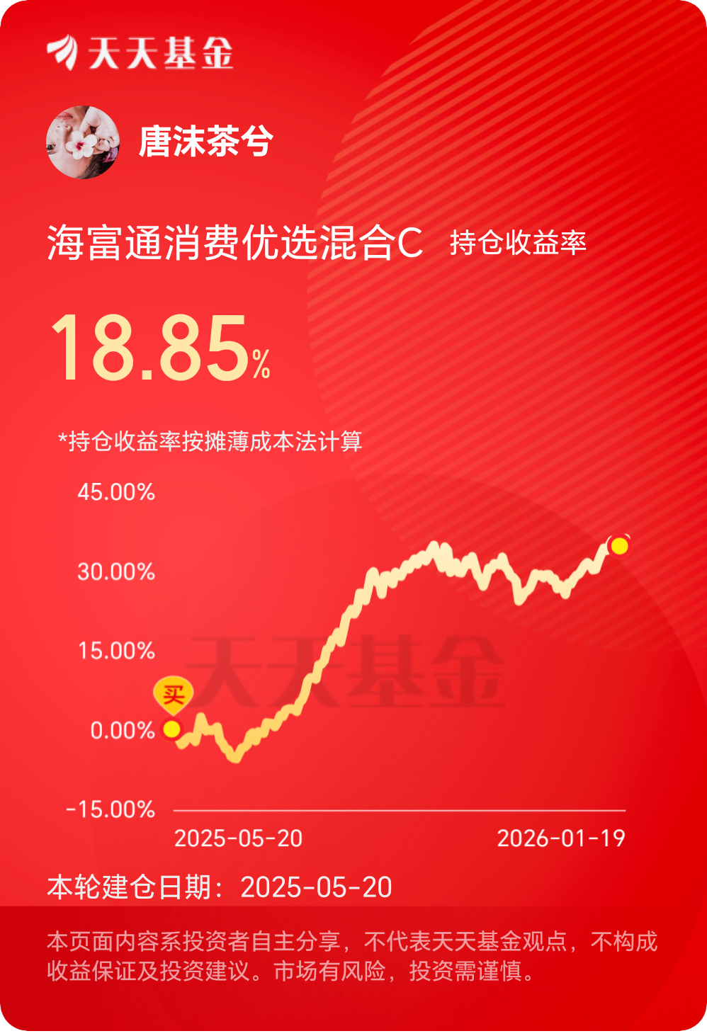 消费最近表现是真好,昨天又加了一波,继续冲哈$海富通消费优选混合C$
