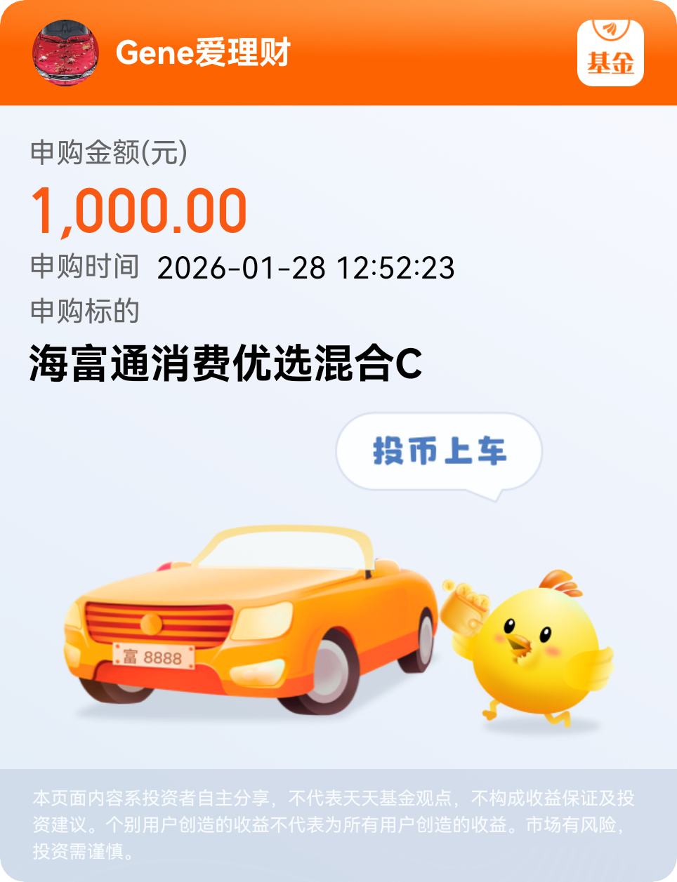 #晒操作# $海富通消费优选混合C$ 聚焦消费领域,覆盖纺织服饰、食品饮料、家电等泛消费行业,同时配置电子、计算机等成长性板块,体现多元化配置思路,整体波动小,回撤低。