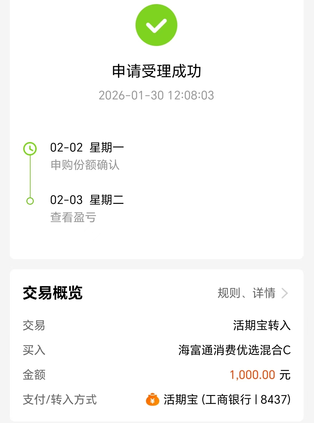 临近春节,消费板块很有可能迎来一波上涨行情。我今天入手了一些$海富通消费优选混合C(OTCFUND|010422)$。