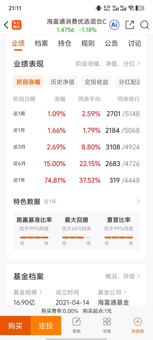 今天,我不光要和大家分享一套实用的选基“心法”,更要结合这套方法,分析一只近期让我真正感觉“眼前一亮”的基金——海富通消费优选混合C(010422),希望能给关注消费赛道的朋友提供一些有价值的参考。