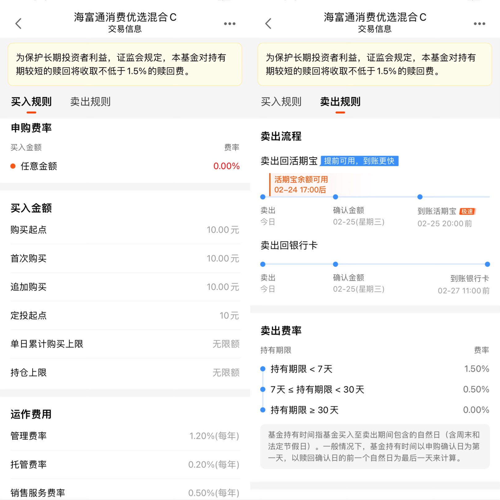 首先,申购费率为0%,不管你买多少,都不用交申购费。这对我这种准备分批建仓、经常加仓的投资者来说,能省下一大笔钱。其次,赎回费率也很友好:持有期限<7天,赎回费1.5%;7天≤持有期限<30天,赎回费0.5%;持有期限≥30天,赎回费0%。这意味着,只要我持有超过一个月,就不用交赎回费,非常适合波段操作或灵活配置。
