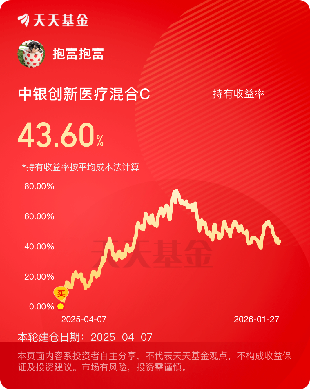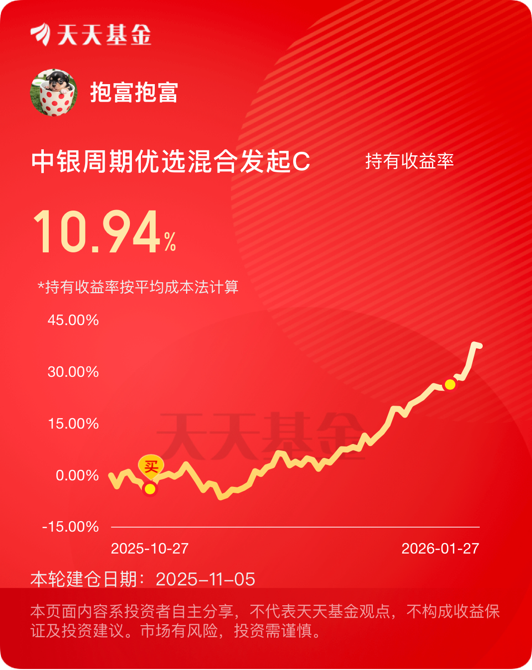 我一直在坚持着,创新药等你再创辉煌!中银周期优选,有色金属的,之前就进去了,最近涨得好猛!也吃肉不少#晒收益#