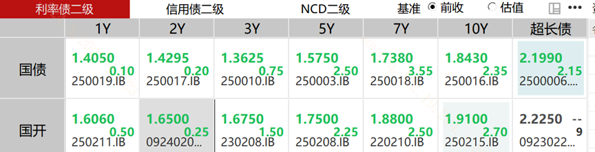 债券市场:国债期货普跌,30年国债期货下跌0.86%,10年期国债期货下跌0.36%,现货利率普遍上行,中长端利率幅度上行更大。(数据来源:wind)