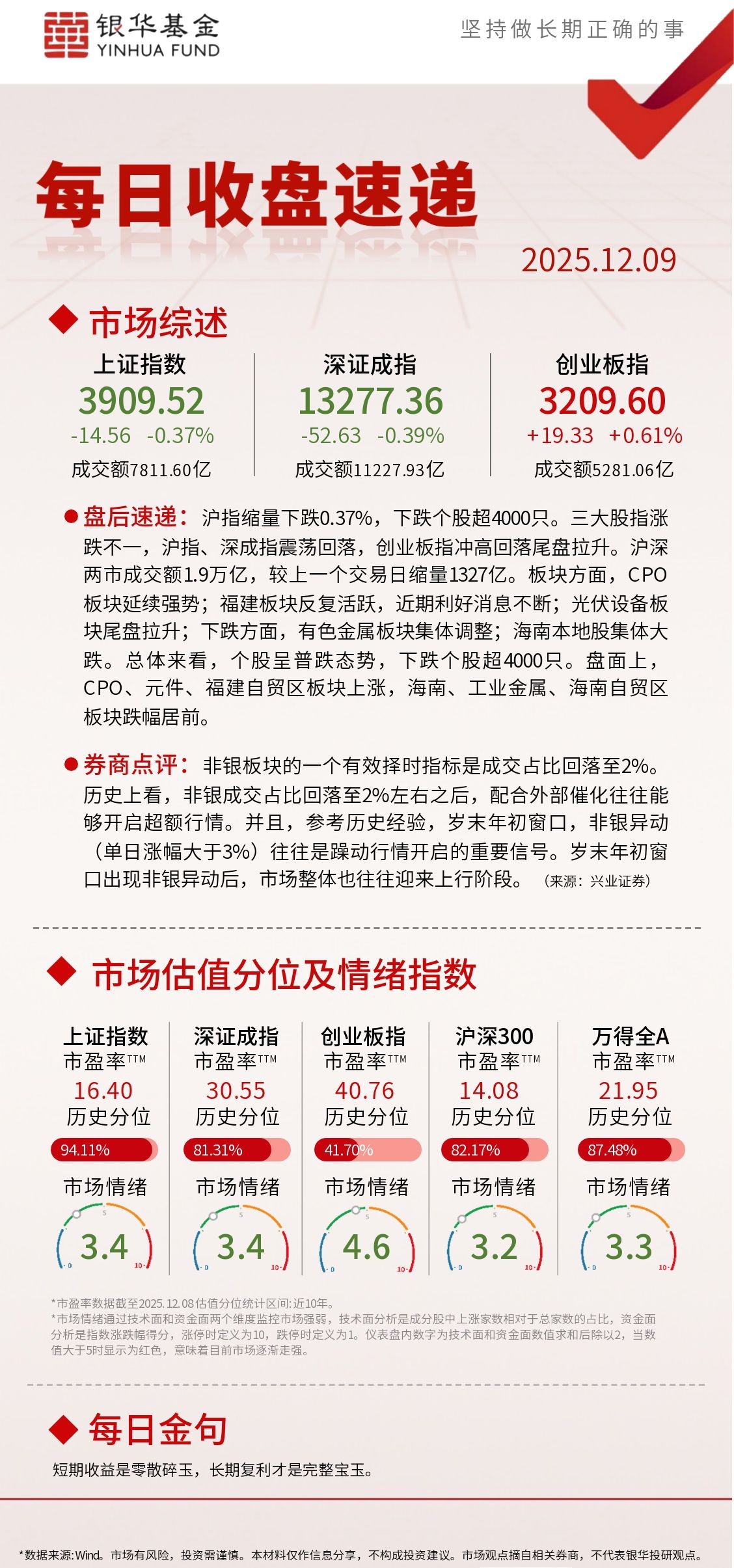每日收盘速递 | 2025.12.9 沪指缩量下跌0.37%