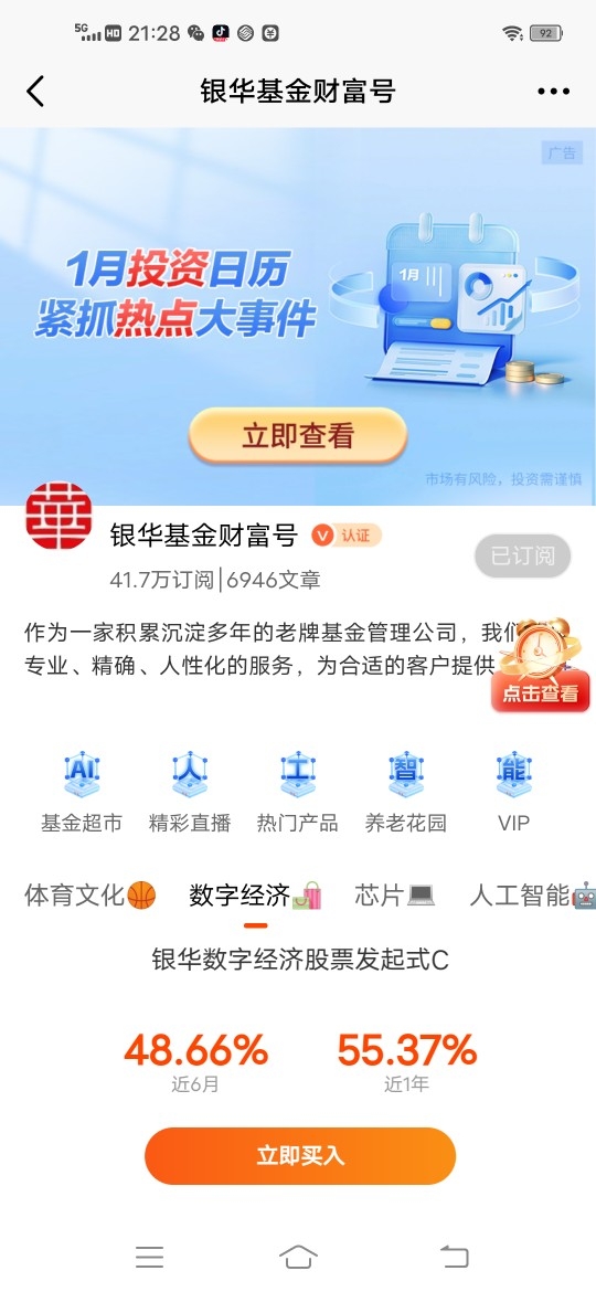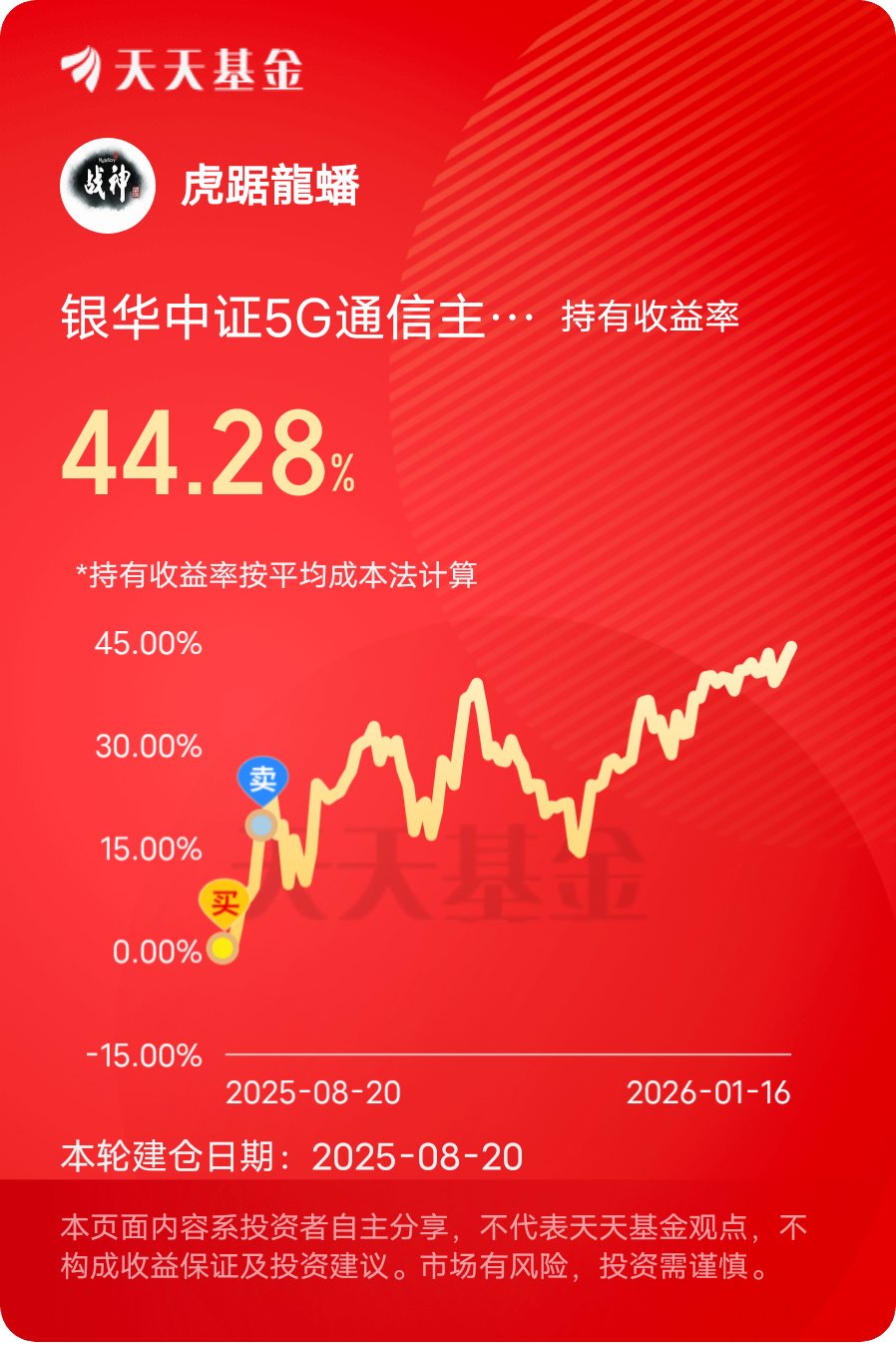 $银华中证5G通信主题ETF联接C$近一年上涨103.54%,大幅跑赢同类基金39.89%的平均涨幅,在3000多只同类基金中排名前2%,非常优异!基民小虎是银华基金的铁粉,一直定投持有银华中证5G通信主题ETF联接C、银华集成电路混合C、银华数字经济股票发起式C、银华中证A50ETF联接C、银华中证A500ETF发起式联接I、银华信用季季红债券C等多个基金,收益和体验都非常好!将会继续定投、买入银华基金产品,并长期坚定持有!@银华基金