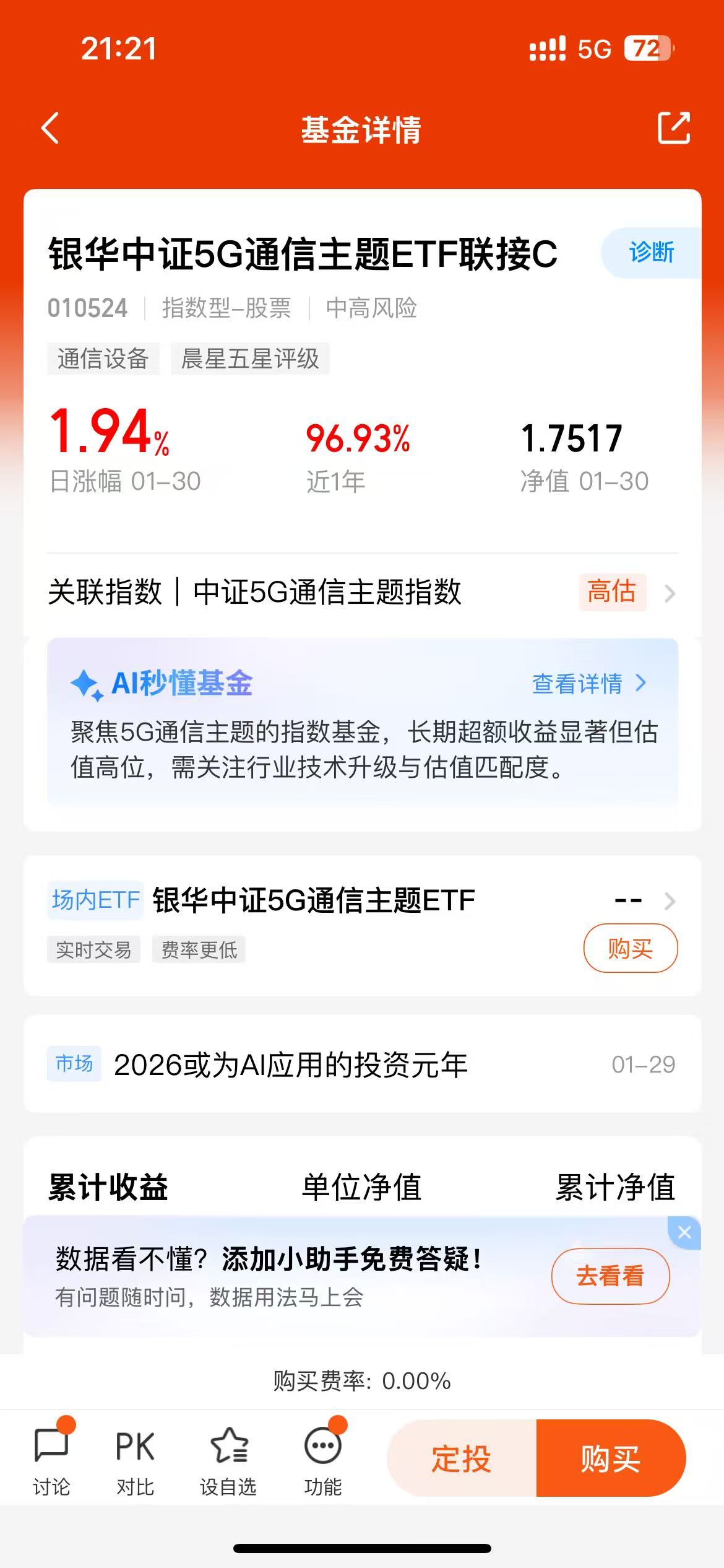 $银华中证5G通信主题ETF联接C(OTCFUND|010524)$