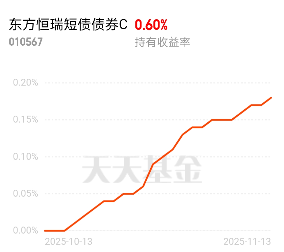 大盘新高后回落、主线迷茫,震荡行情里债基的防守属性太香了!我持有的短债基虽然收益不算高,但稳稳+0.60%,不操心就是最大的快乐~$东方恒瑞短债债券C$