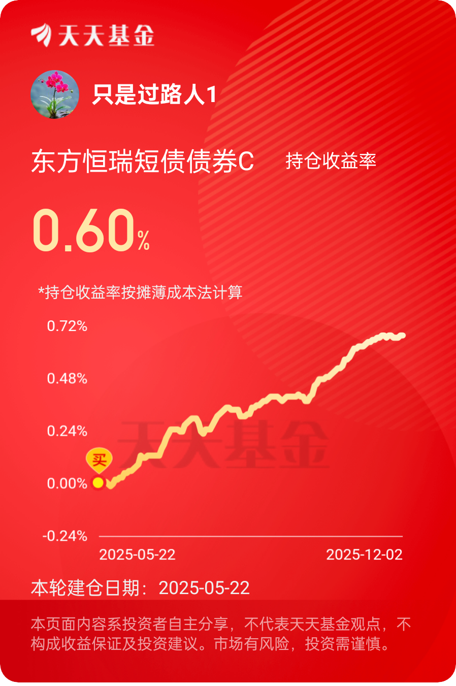 权益市场小幅震荡不用慌,债市稳步走高踩准节奏,低吸小追高布局债基,稳扎稳打慢慢赚,求稳就选这波~$东方恒瑞短债债券C$#晒收益#