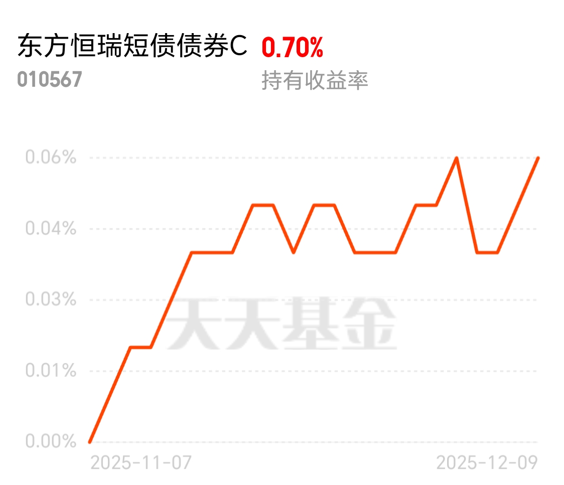 对比过好多产品,还是债基持有体验最好,波动小还省心,长期投资收益稳稳上升$东方恒瑞短债债券C$