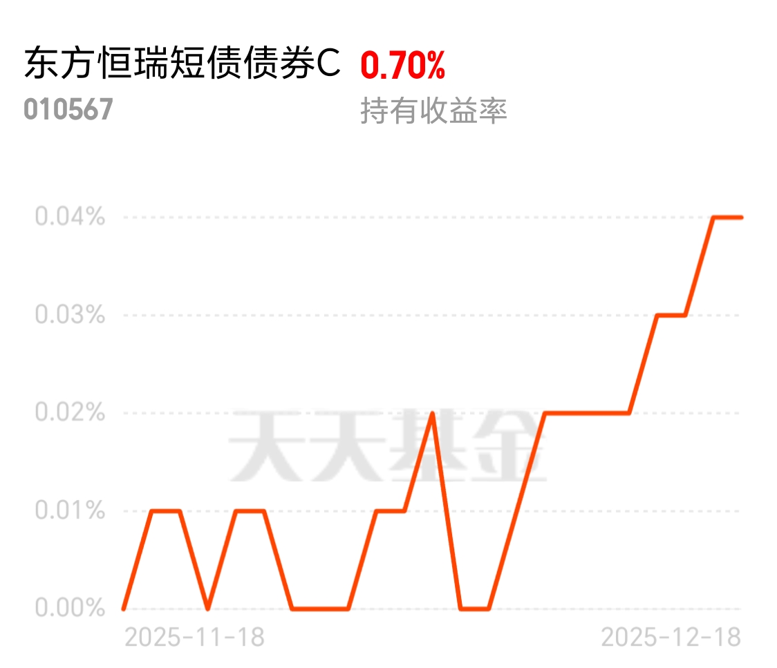 不贪高收益就爱债基稳,慢慢涨超踏实,资产配置必备,长期持有准没错!$东方恒瑞短债