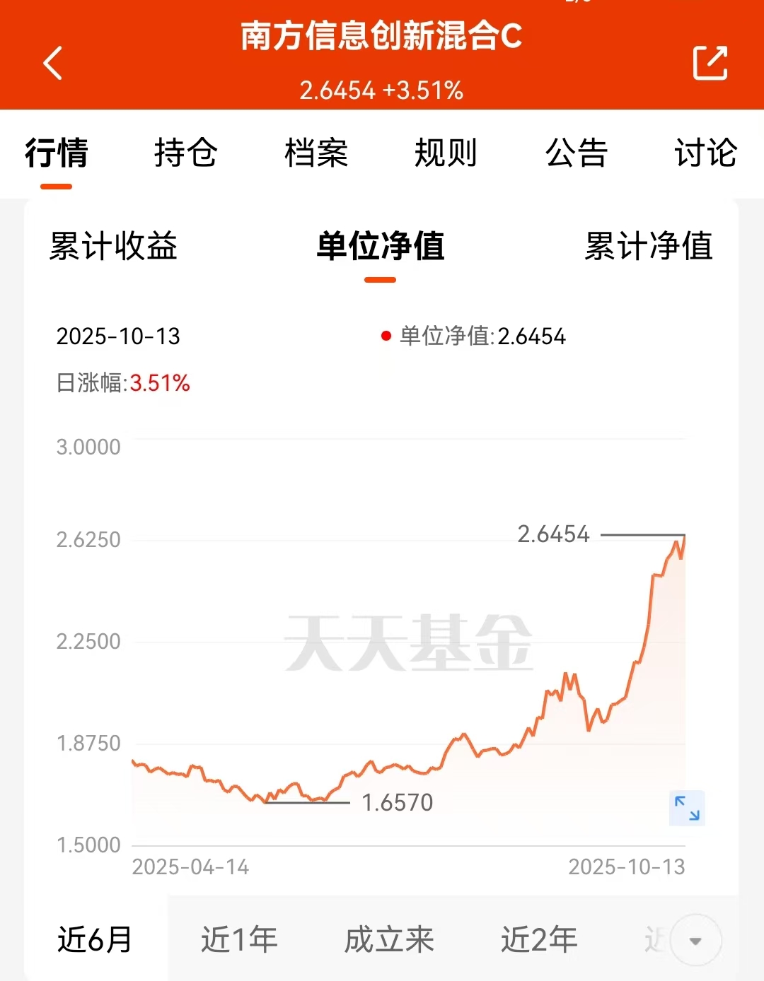 看$南方信息创新混合C$(007491)这基近三个月47%的涨幅,近一年80%多的收益,靠的就是死磕半导体!半导体行业现在订单充沛,技术突破一个接一个,国产化率从23%往30%冲。这基持仓高度集中,就是看好半导体未来三到五年的爆发力。行情好了就要买这种敢重仓的基,蹭热度也要蹭在主线上!#券商把脉:冲击小于4月 黄金坑再现?#
