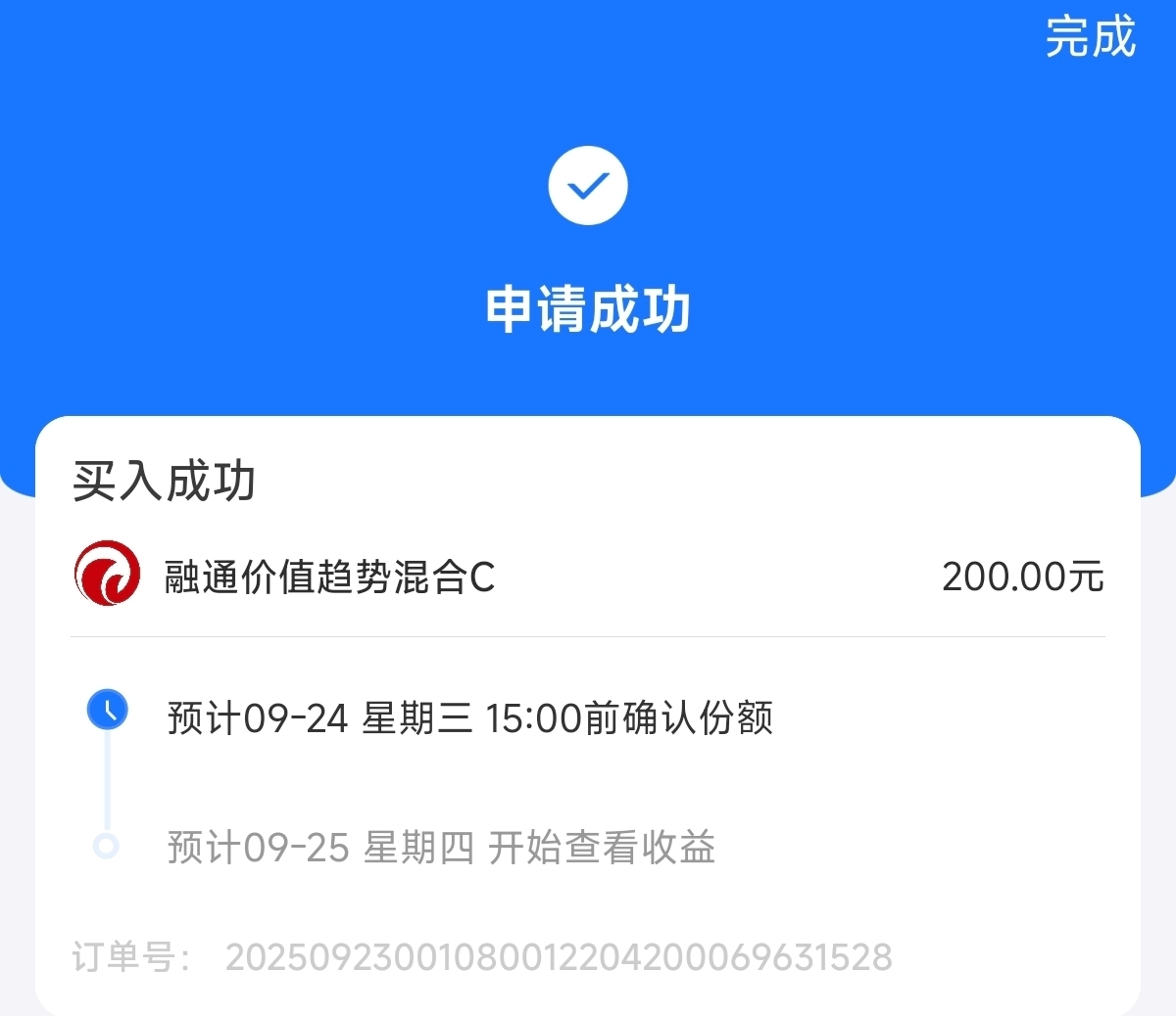 今天三大指数集体高开低走,机会不错,我个人继续加仓$融通价值趋势混合C$ 200元。昨天三巨头开完会,市场调整反而适合布局这种有成长又均衡的基。
