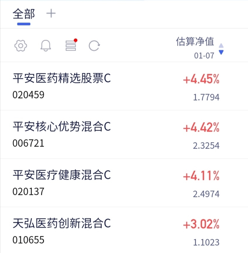 今天医药行情很不错,逆势反弹。$平安医药精选股票C$最新估值上涨了4.45%,表