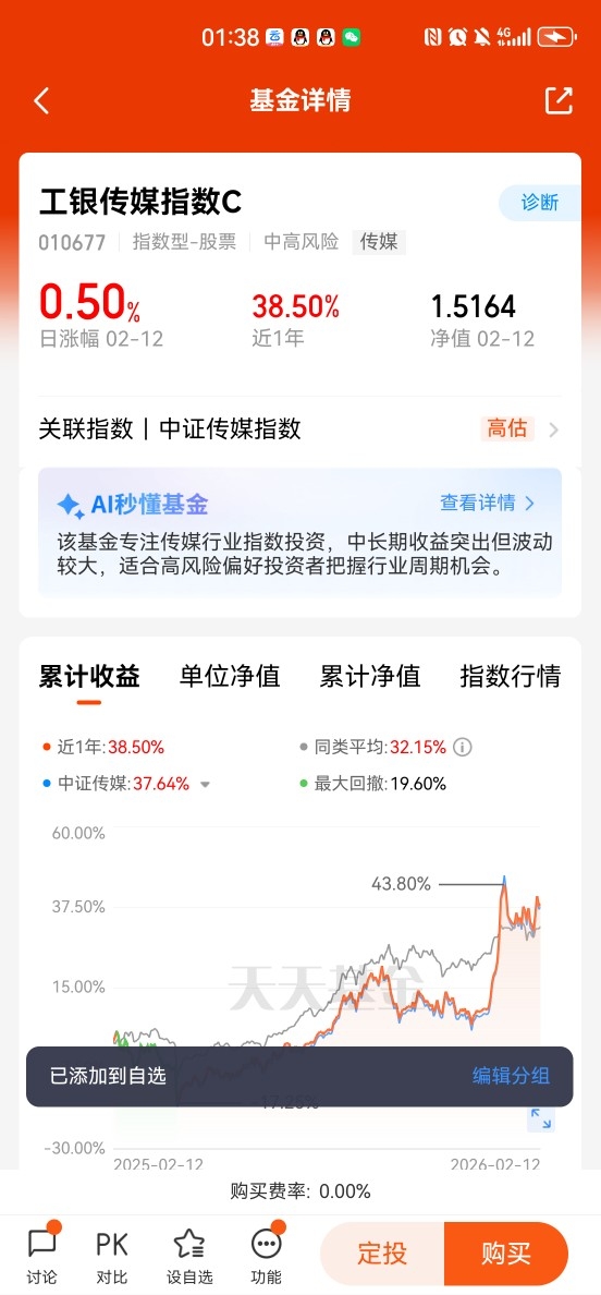 作为行业观察者与投资者,我计划在大年初一连刷《飞驰人生3》与《镖人:风起大漠》,实地感受消费热度与技术落地的真实场景。同时,我将通过工银传媒指数C类(010677)的定投策略进行布局: