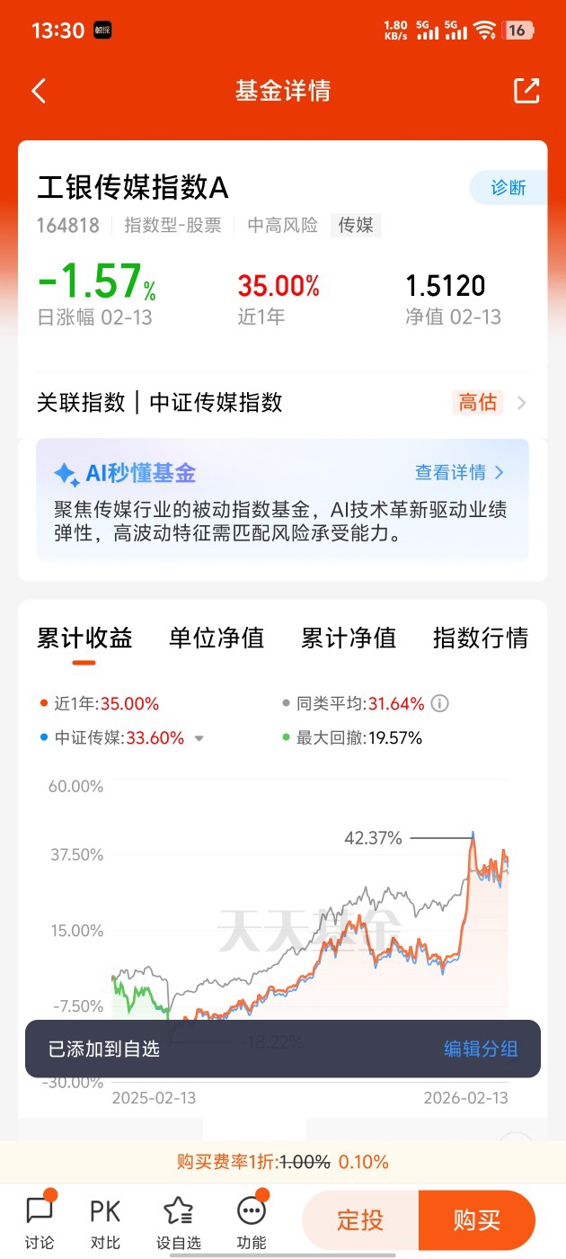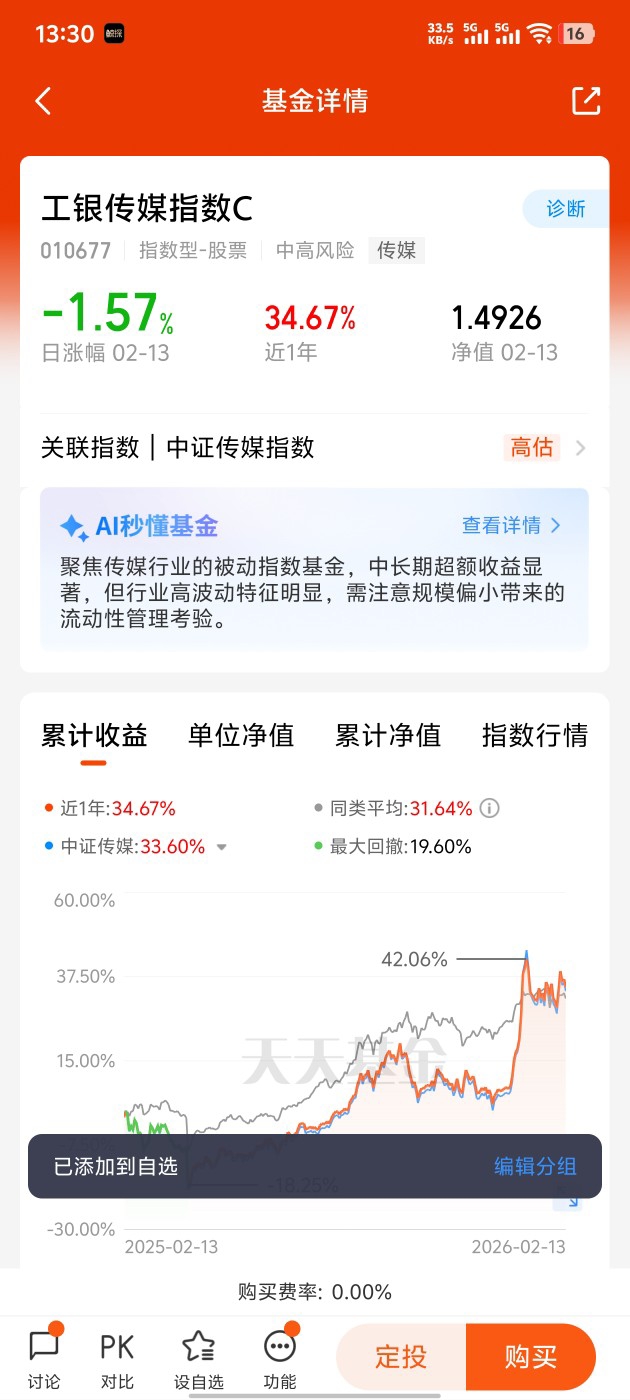 #新年会启财富新章# #抓马 2026 Pick 你心中的王牌赛道# #暖阳创作计划# #晒实盘# @天天基金创作者中心 @工银瑞信基金 $工银传媒指数C$ $工银传媒指数A$ #2月基金投资策略#