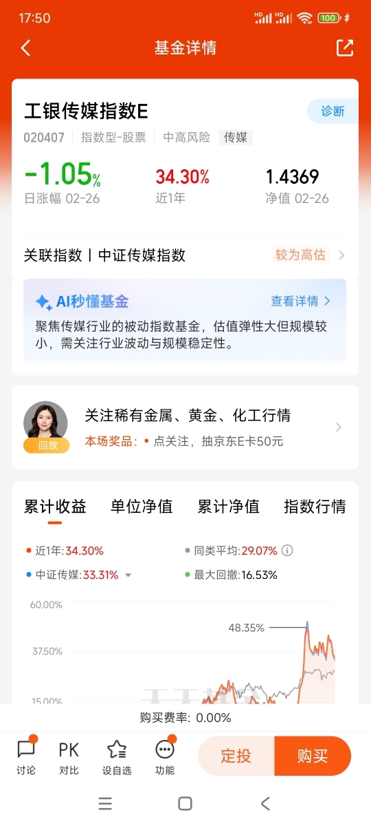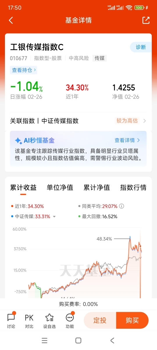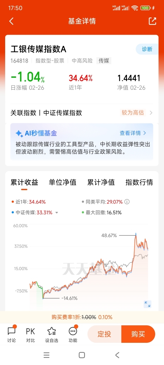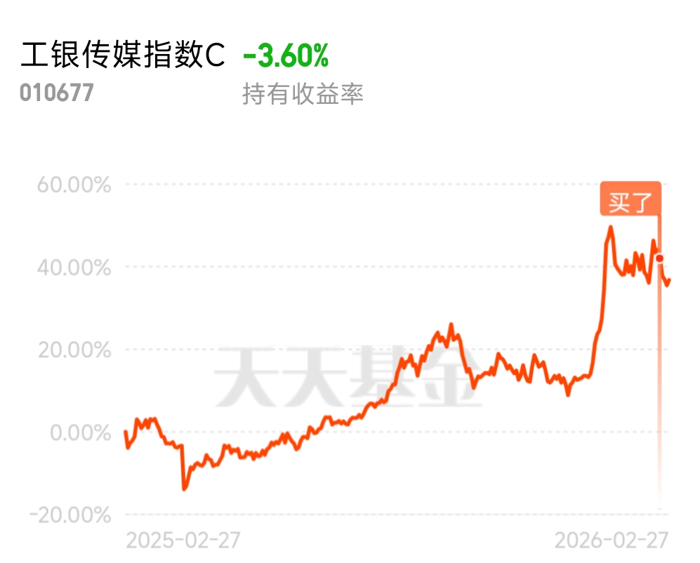 $工银传媒指数C$ 的中证传媒指数AI相关标的权重约35%,覆盖游戏、广告、影视、内容生成等AI落地最快的场景,投资$工银传媒指数C$最大优势, 一键买齐50只传媒龙头,含游戏、影视、广告、数字媒体,不赌单票、不踩空细分,$工银传媒指数C$ 是最简单最直接的传媒行业投资产品,AI+娱乐的风口还在,传媒板块的上涨趋势也还在,但机会是留给有准备、有理性的人的,祝大家都能把握机会,赚到属于自己的那一份收益。@工银瑞信基金 #晒收益#