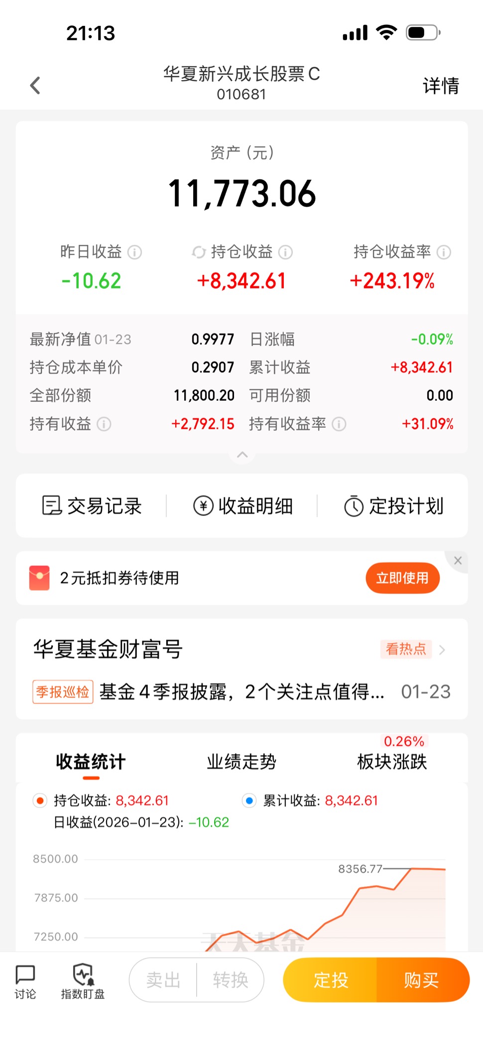 一直看好你,虽然先前跌了不少,所以就也一直定投,周五盘中看净值上1了就赎回了,盘后净值岀来没上1,不过也知足了。你是少有的上岸之基,也算操作的很有水平之人了感谢你