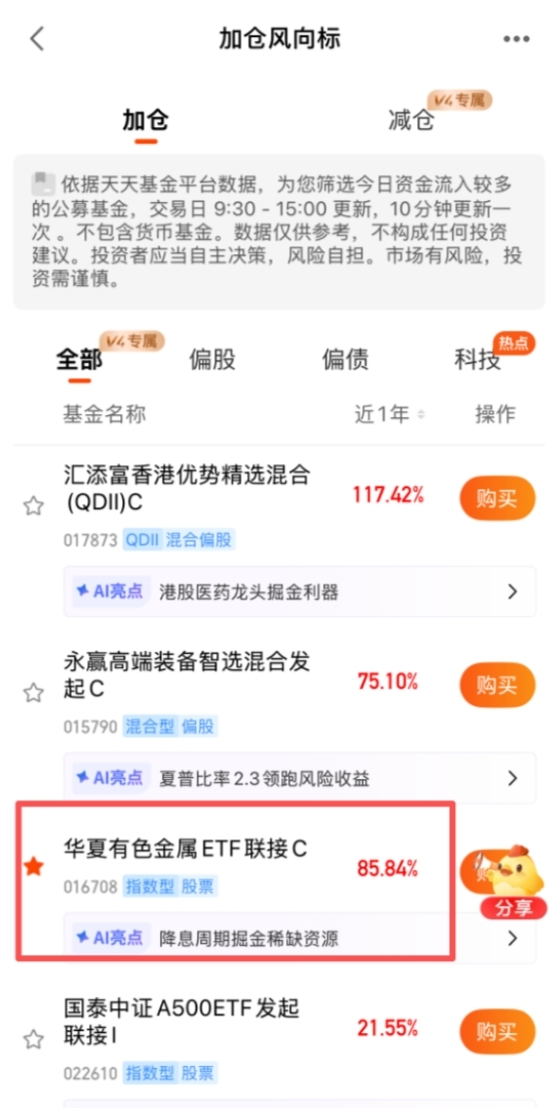 近期有色金属走势喜人,近3个月收益24%+,近1年收益85%+,$华夏有色金属ETF联接C$铜含量31%,铝含量15%,今天上了加仓风向标,吸金能力很强,加上D份额还有7天免赎回费,这波收益差不了,跟着大佬们冲了$华夏有色金属ETF联接D$