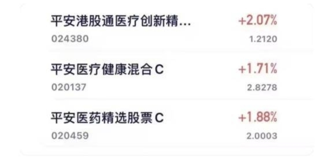 看,今日多只平安系医疗主题基金估值表现亮眼: