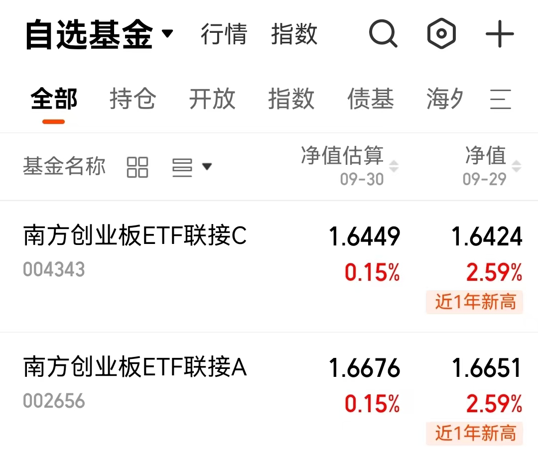 看看创业板的走势,最近真是强势尽显。我这个产品$南方创业板ETF联接C$(004343)紧紧跟随着指数,享受到了这波上涨。它的优势很明显:跟踪紧,误差小,能准确复制指数表现;费率低,能提升长期收益。创业板波动大,机会也多,通过这种指数产品来参与,省去了选股的麻烦,还能抓住板块整体的涨幅。行情来了,真是宜早不宜迟。#分享国庆见闻,晒收益,瓜分好礼!#