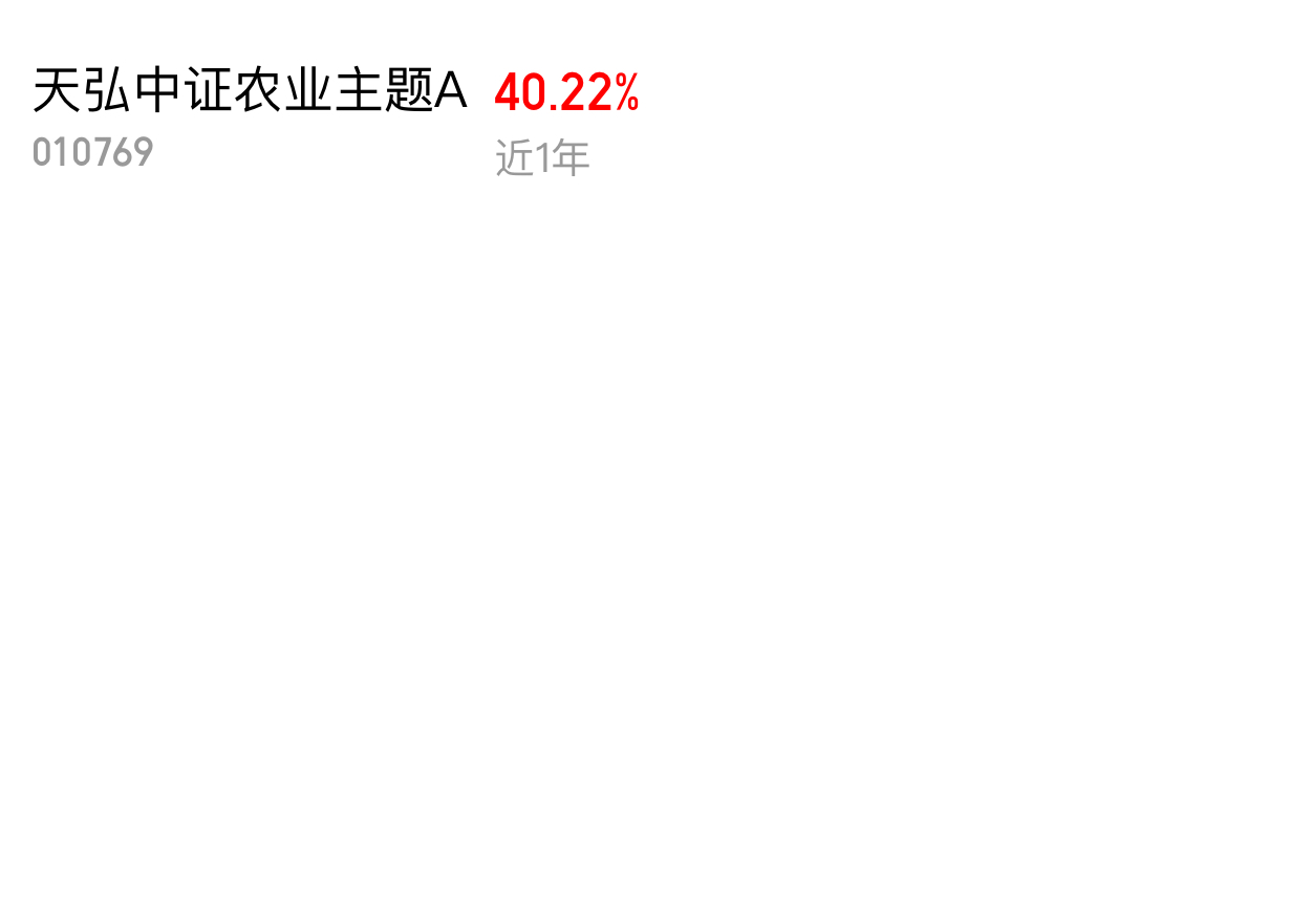 $天弘中证农业主题A$ 近一年(截至2025年9月)净值增长率为40%,在同类农业主题基金中表现突出。
