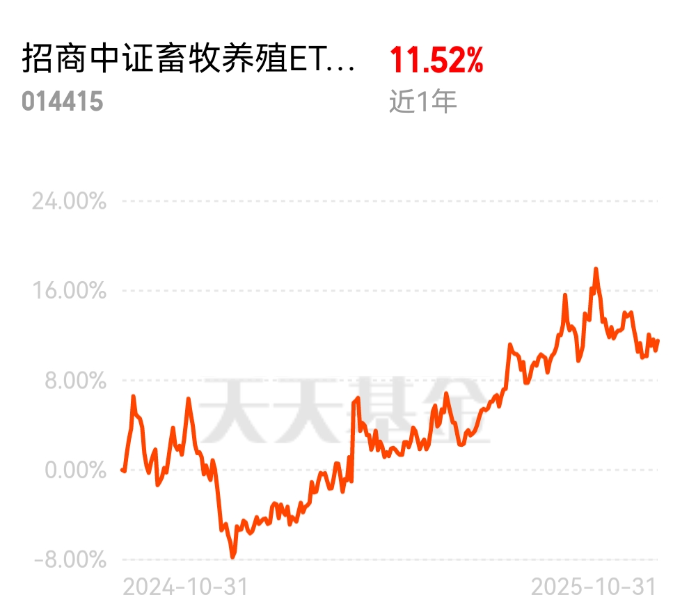尤其是这支$招商中证畜牧养殖ETF联接C$ ,持仓农业养殖方向,主要覆盖养猪概念和饲料等养猪上下游+禽类、水产等养殖概念,有一定周期性,整体走势和猪价相关;