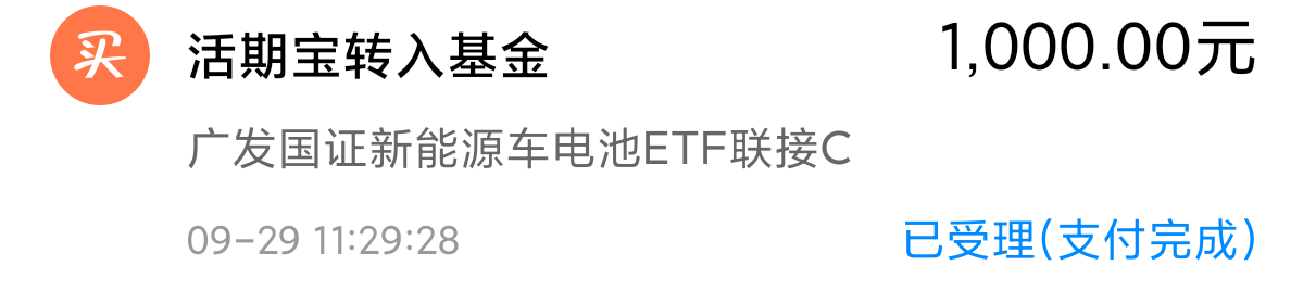买进1000的 $广发国证新能源车电池ETF联接C(OTCFUND|013180)$
