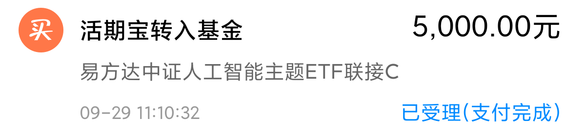 买进5000的 $易方达中证人工智能主题ETF联接C(OTCFUND|012734)$