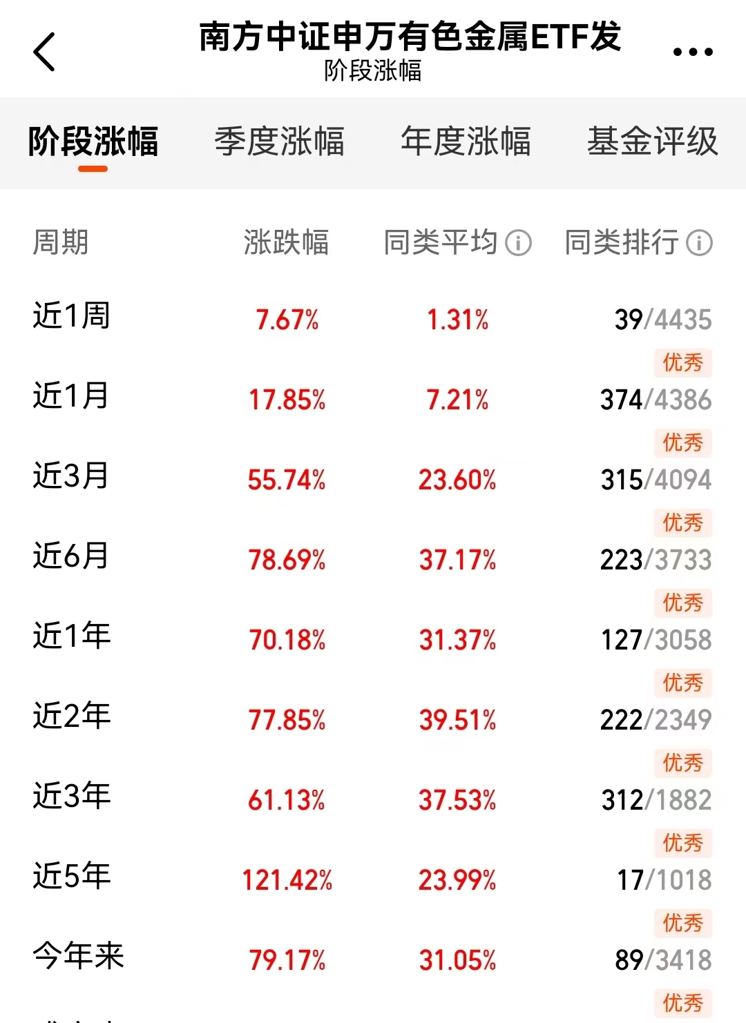 说实话,看到$南方中证申万有色金属ETF发起联接C$(004433)昨天那么大的涨幅,心里是有点激动的。但投资不能光看一天,得看趋势。这基金近一年70%多的涨幅,近一个月接近18%的涨幅,都说明它处在一条向上的通道里。有色金属这个行业,特点就是周期性比较强,一旦赶上需求旺、供给跟不上的时候,行情就可能来得比较猛。现在好像就有点这个意思,无论是传统的基建,还是新兴的光伏、风电,都离不开金属材料。用这个基金来做配置,我觉得是应对当前情况的一个可行思路。#指数操盘手集结令#