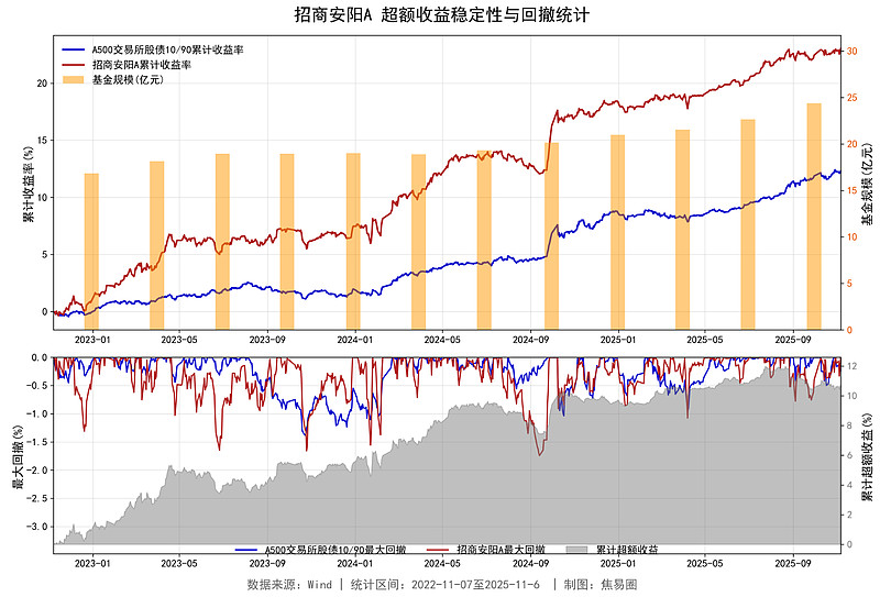 “固收+量化”的搭配,确实更有利于获取稳定超额,目测超额回撤在2%左右。