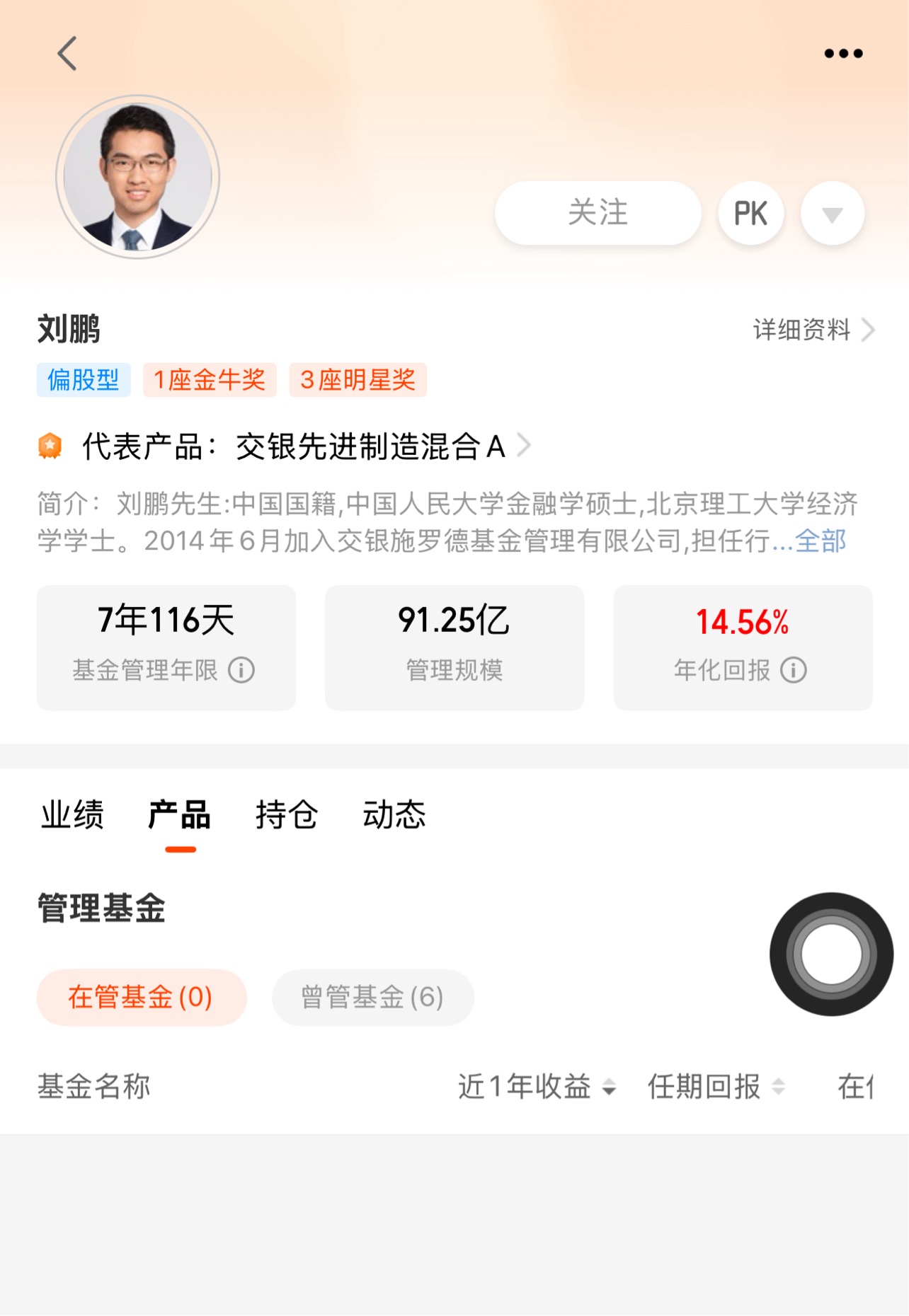 刘鹏经理是为数不多的,在亏损状态下把净值做盈利的,全市场找得出几个这样的基金经理?那些所谓的金牛经理,有几个敢做回本的?交银必须给个说法,为什么换刘鹏,而且换得一干二净,一个产品都不管?是你庙太小人家离职了吗?