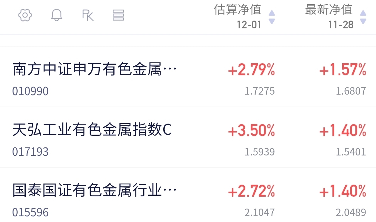 $南方中证申万有色金属ETF发起联接E$ 估值大涨+2.79%,厉害