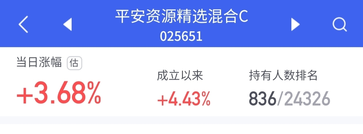 $平安资源精选混合C$ 估值暴涨+3.68%,还在拉升