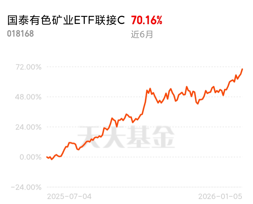 南方申万有色金属E最近表现抢眼,我也回顾了下自己配置的国泰中证有色金属矿业主题ETF联接C。虽然都是有色金属主题,但国泰这只更聚焦于矿业上游,特别是锂、钴、稀土等核心资源品。这种差异化定位很有价值,当行业轮动到上游资源环节时,国泰中证有色金属矿业主题ETF联接C往往表现出更强的进攻性。数据显示近1周涨4.9%、1个月涨10%、3个月涨18%,长期持有收益更为可观,近1年实现翻倍增长,2年涨109%。