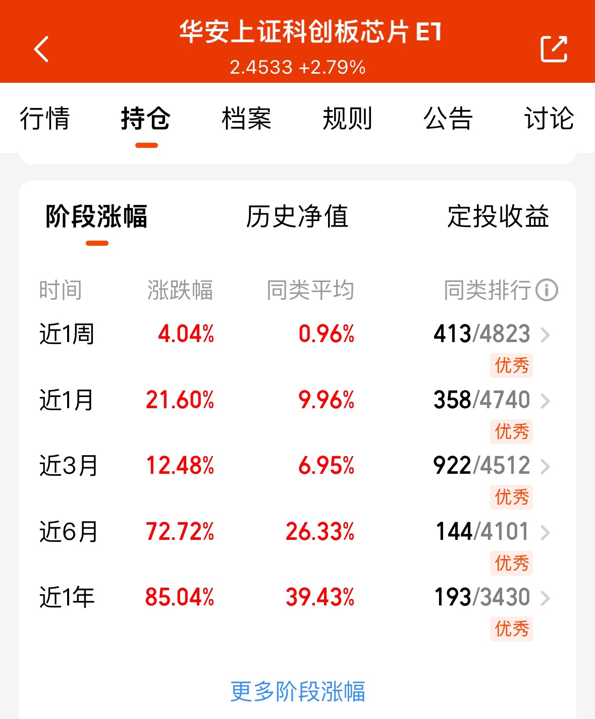 芯片赛道狂飙,$华安上证科创板芯片ETF发起式联接C$近1年涨85.04%,AI