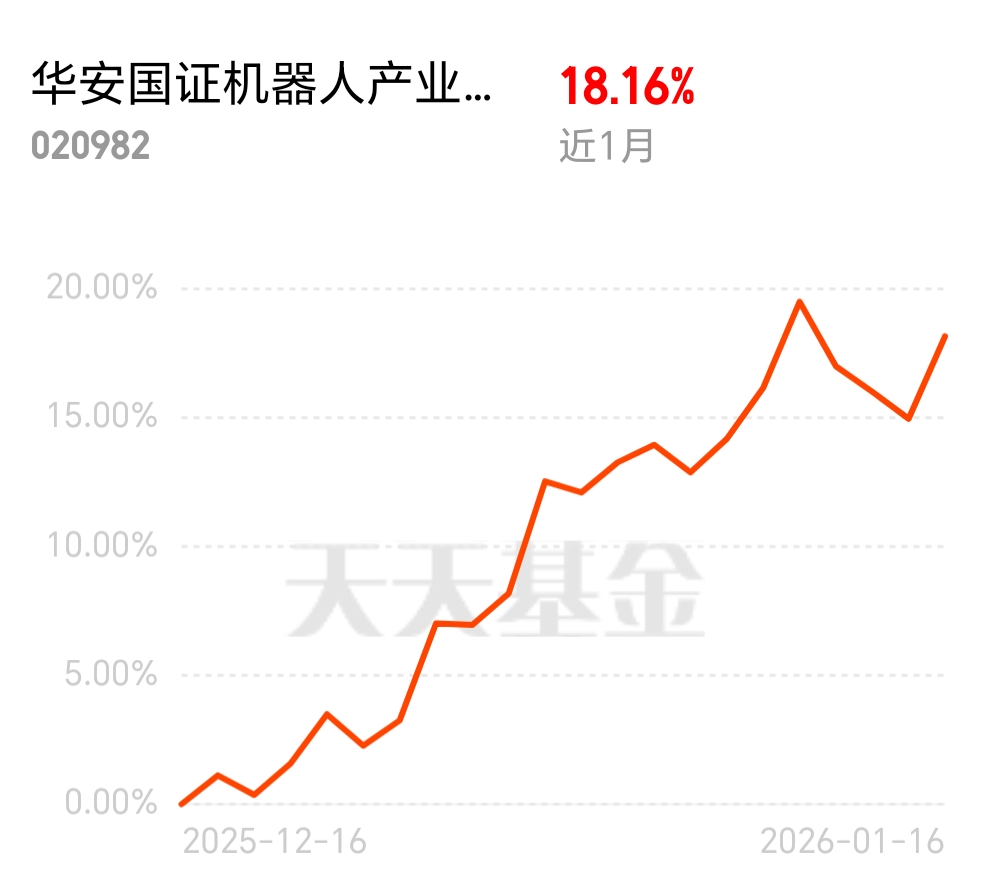机器人赛道主升浪已开启,$华安国证机器人产业指数发起式C$ 近 1 月涨超 18%,契合量产落地趋势,政策加码下,长期持有收益可期