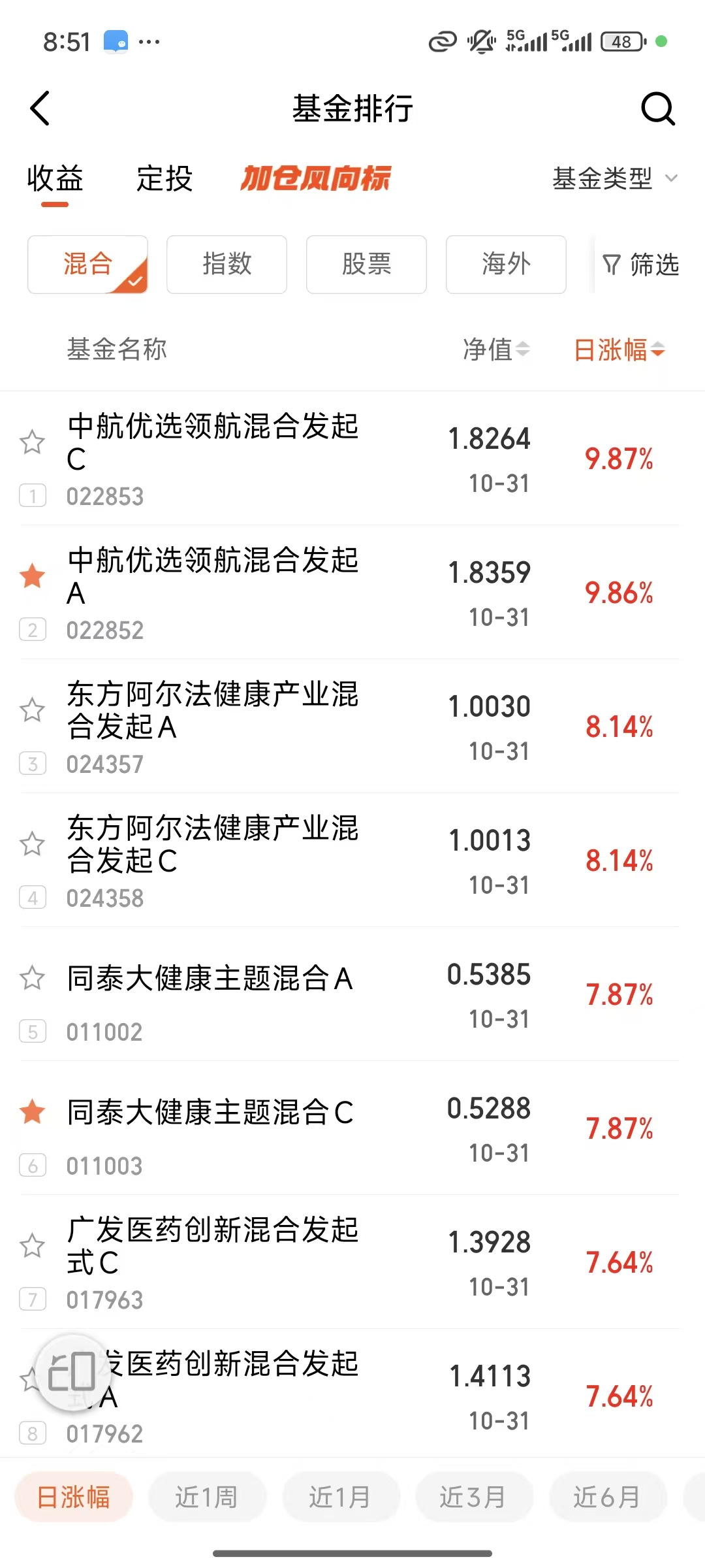 同泰大健康在上个交易日交出 7.87% 的暴涨答卷,不仅以 A、C 合并计算的方式跻身全市场前三,更大幅领先同类基金,将 “弹性强、短期爆发力强” 的标签牢牢钉在创新药赛道。作为专注创新药板块的基金,它摒弃了医疗领域的 “泛化布局”,始终聚焦创新药研发突破、商业化落地的核心机会 —— 近期板块内企业密集公布阳性临床数据、海外授权合作频繁落地,这些利好直接推动基金持仓标的集体走强,最终转化为净值的大幅跃升。这波冲进前三的表现,并非孤立的 “偶然爆发”。近两个月来,该基金已多次拿下全市场涨幅第一,用高频次的领先成绩,印证了对创新药行业节奏的精准把控。而 “小而美” 的规质,更是其竞争力的重要加持 —— 无需受限于大资金调仓的束缚,能快速跟进创新药企业的审批进展、管线动态,比如在某药企新药获批消息发布后及时加仓,精准捕捉短期上涨窗口。这种 “专注赛道 + 灵活操作” 的组合,让基金既能在创新药行情启动时领跑,又能持续创造亮眼业绩,成为布局该赛道的 “爆发力利器”。