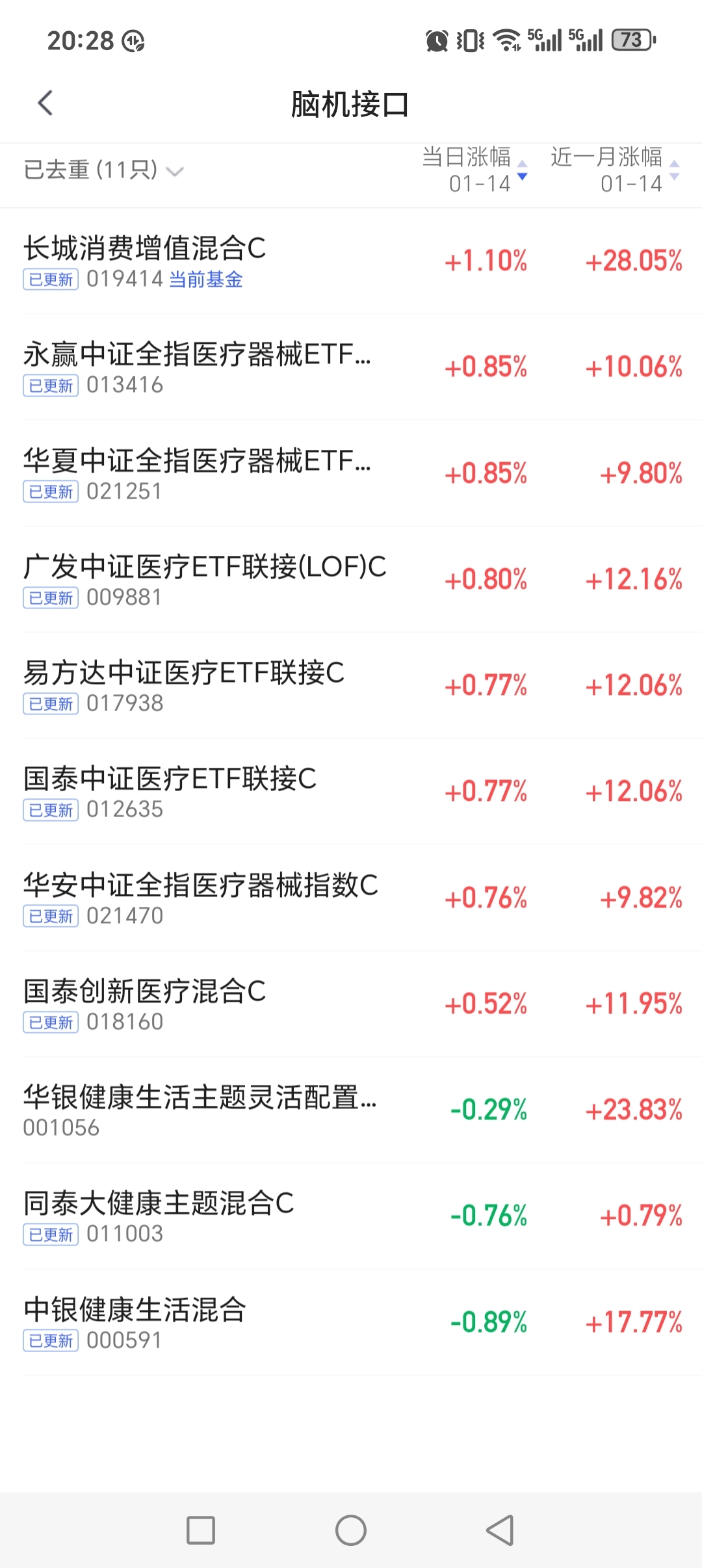 观察几天了,调到脑机接口,11支基金,每天排名都在后三位。