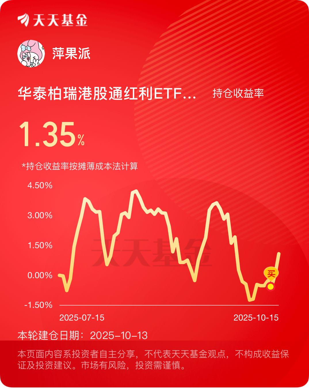 $华泰柏瑞港股通红利ETF联接基金C$又又又涨了,估值升超1%,连续三天收红!在
