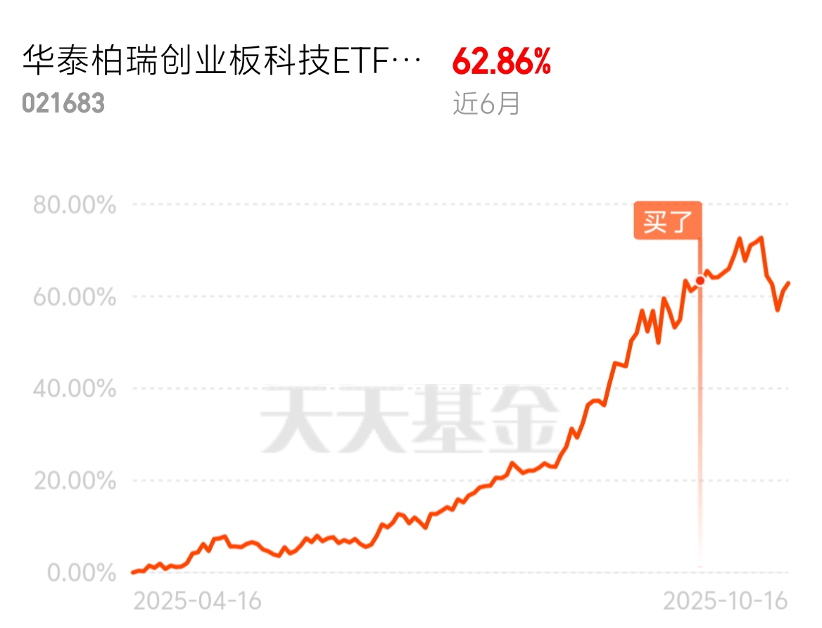 今天打开账户心情美滋滋,$华泰柏瑞创业板科技ETF发起式联接C$ 涨了1个点。回头看,近六个月收益超过62%,这长跑能力也太强了吧!