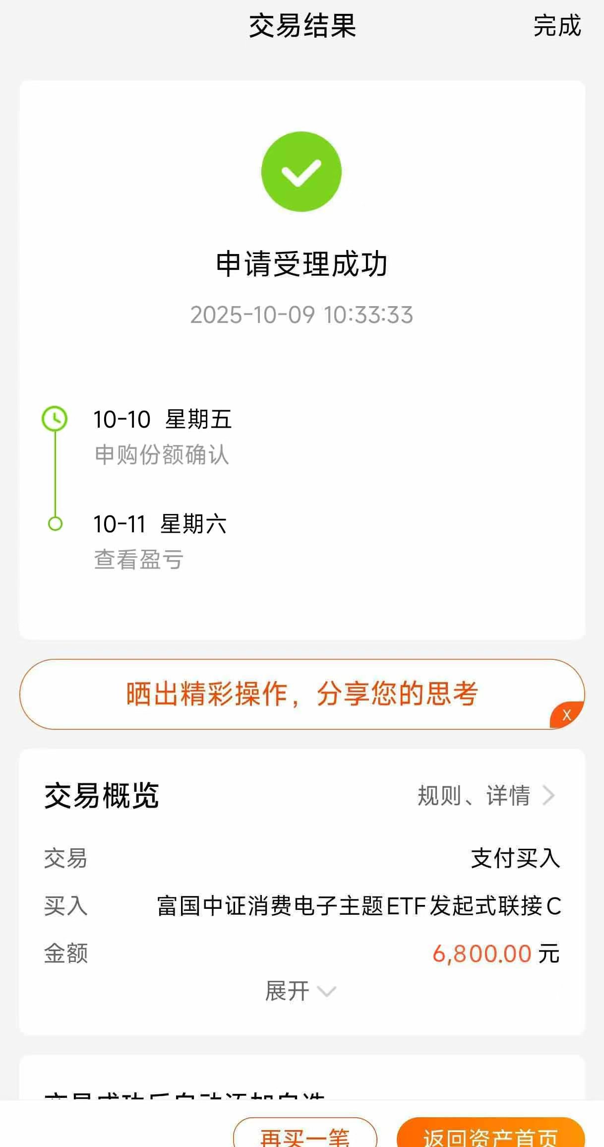 科技强势回归的感觉真爽,消费电子直接领涨,持仓的富国中证消费电子主题ETF发起式联接C(015877)也涨得不错。其实最看好的是AI硬件和高端存储的机会,现在不管是手机还是PC,都在往智能化升级,这些细分领域的需求根本挡不住,这才是行业真正的成长动力,短期涨涨跌跌不用太在意#分享国庆见闻,晒收益,瓜分好礼!#