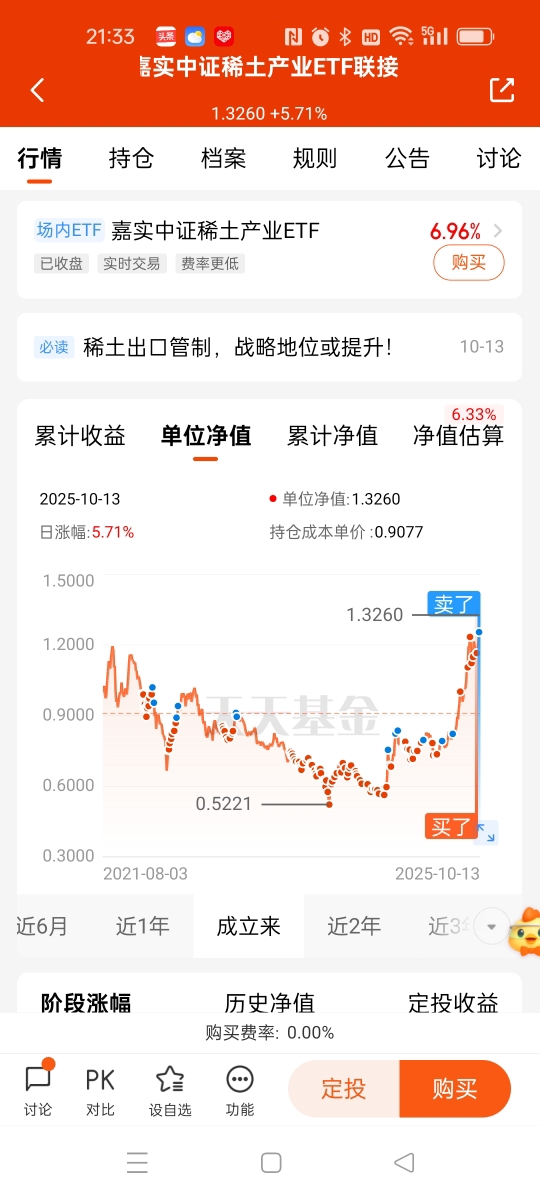 本人已参与这个基金投资有好几年了,曾经也是数次高抛低吸的操作着(见截图),如今这波大涨的稀土板块行情,已经创了近几年的新高,让很多人有筹码的投资者都开心鼔掌。