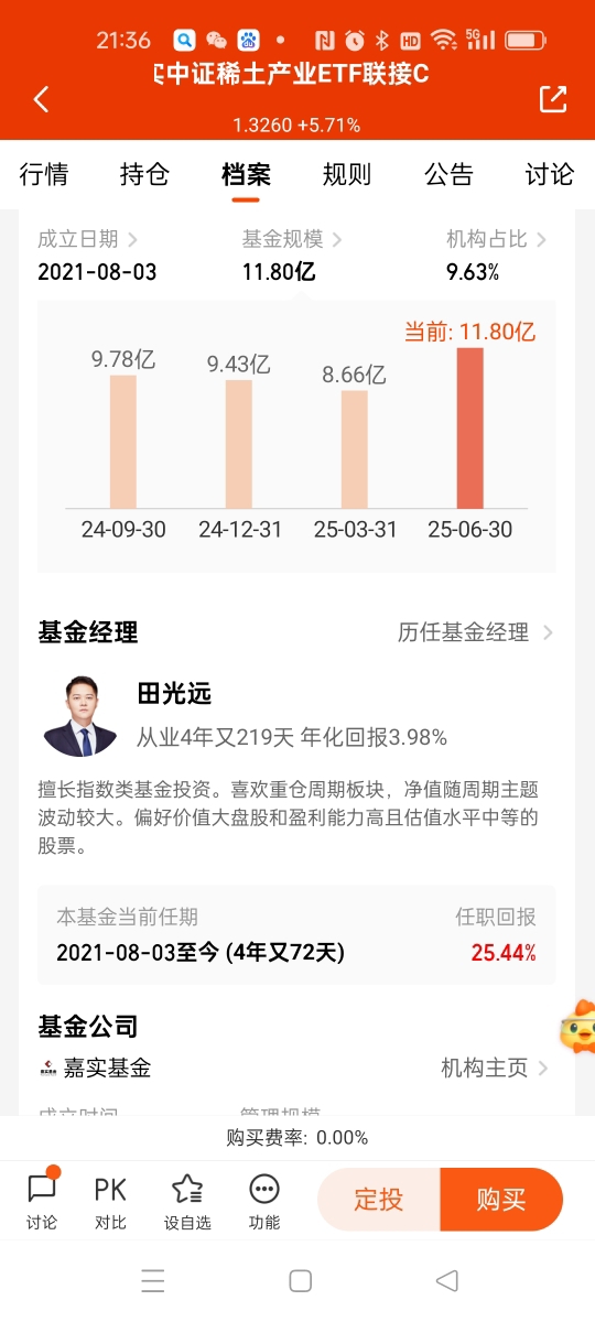 $嘉实中证稀土产业ETF联接C$,代码:011036