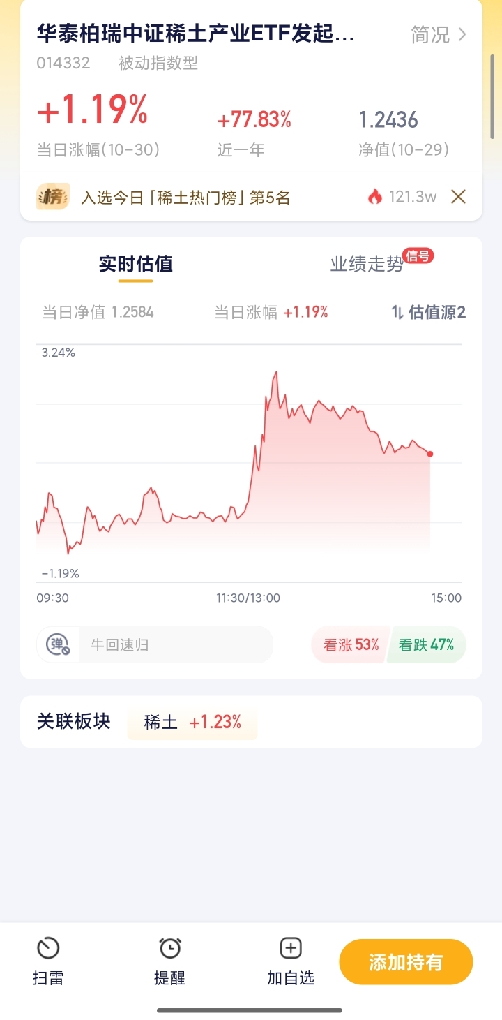 今儿稀土板块逆势涨得不错,主要是这逻辑太。不是短期消息炒起来的,是“需求啃着配额、供给补不上、库存见底”三个实锤凑一块儿了。你看全球90%的分离技术都在咱这儿,国外就算挖了矿也得运过来加工,定价权在咱手里。北方稀土、中国稀土这些成分股业绩都跟着涨,利润翻好几倍的都有 。不想费脑子选股的,华泰柏瑞能帮着盯紧这些机会,比自己瞎折腾强。$华泰柏瑞中证稀土产业ETF发起式联接C$