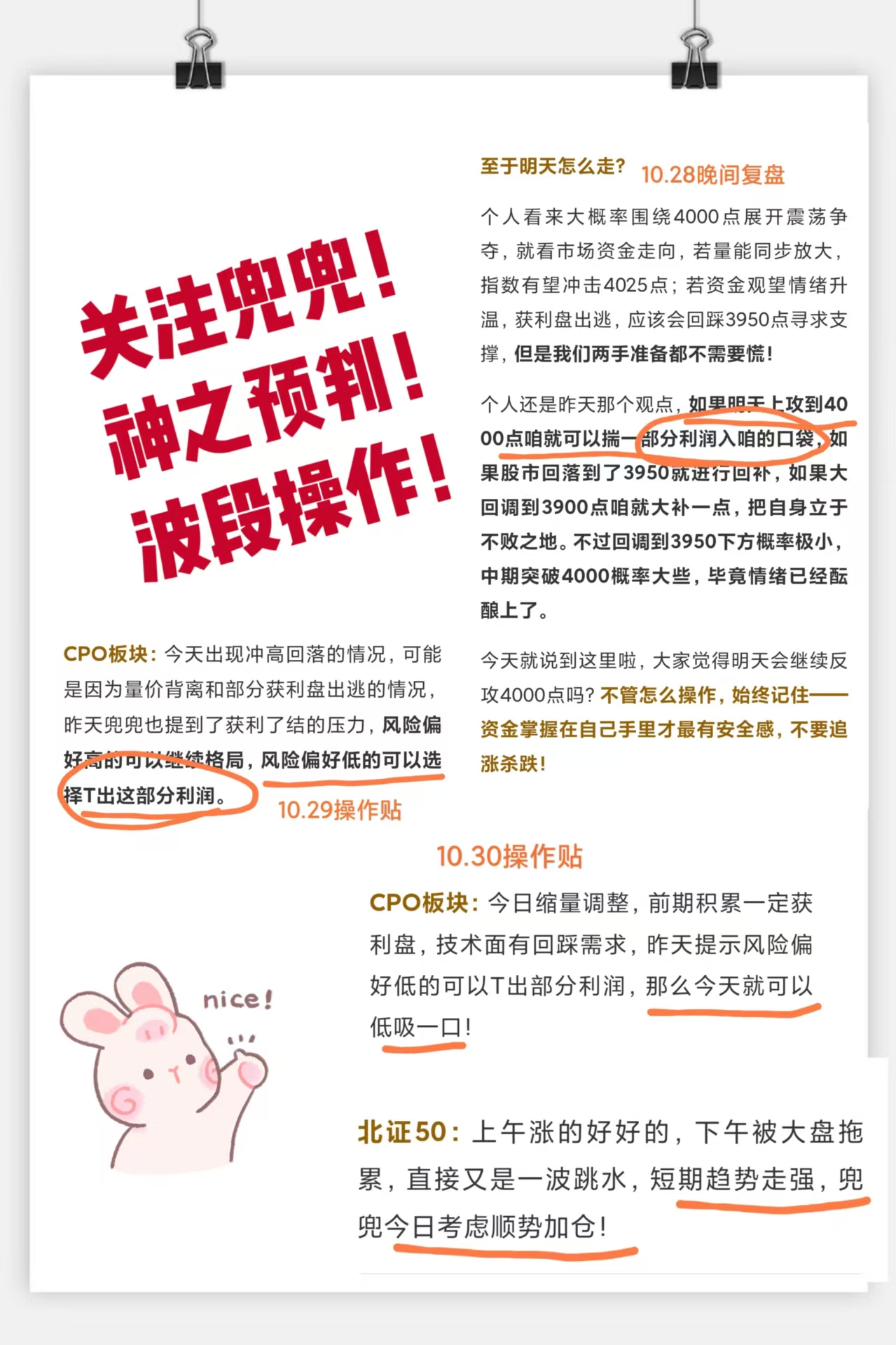 至于明天的行情,兜兜个人觉得大概率依旧是震荡着走,今天zhengjianhhui证实同意摩尔线程科创板IPO注册申请,作为国产GPU领军企业,会吸引部分资金流入科技板块,兜兜今天白天已经提示过把握科技低吸机会,明天就千万别追高了!毕竟短期利好已经在逐步消化,如果要说近期走势每个月涨100点左右,10月的目标已经实现了,今天洗一洗是为了更好的上涨,都是为了11月做准备。
