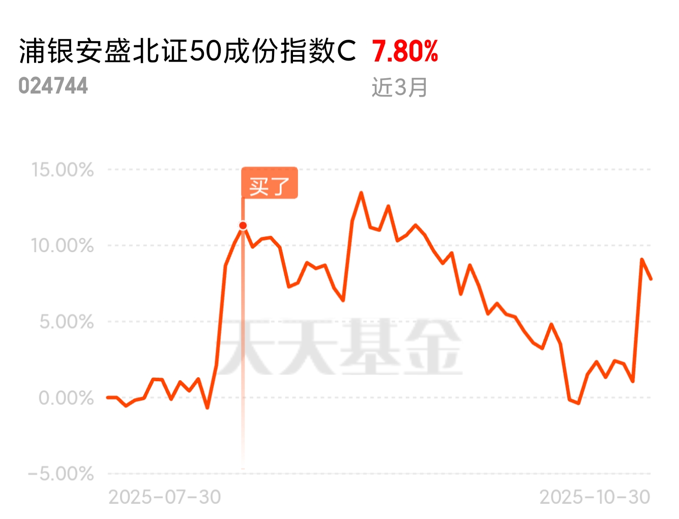 北交所出手了,受北证50ETF加快推出利好刺激,资金快速涌入,拿住浦银北证50,布局起来$浦银安盛北证50成份指数C$