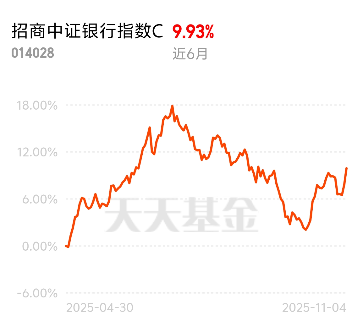不少投资者盯着高股息赛道,港股无风险收益率4~5%,境内不到2%,A股银行更有吸引力。招商中证银行指数C没让人失望,近6个月涨了9.93%,适配当下行情。